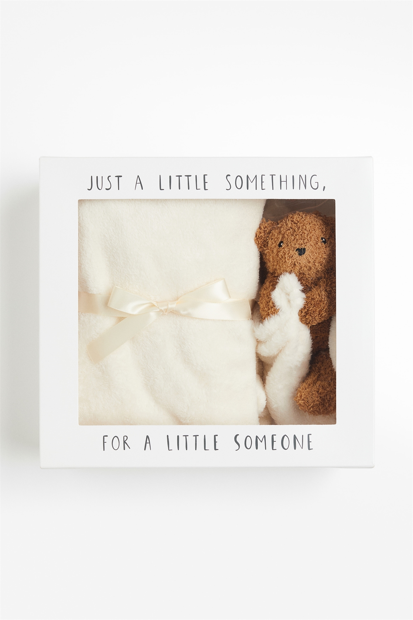 Милый подарочный набор для малышей, состоящий из супермягкого флисового одеяла и плюшевого медвежонка, держащего комфортное одеяло. Высота мишки от макушки до пят 15 см. Размер одеяла 25x25 см.