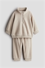 Комплект из мягкого флиса, который можно носить как сам по себе, так и в качестве утепляющего слоя. Топ с воротником-стойкой, застежкой-молнией в верхней части с защитой подбородка от натирания, спущенными плечами и длинными рукавами. Ребристые манжеты и подол. Брюки с эластичной утягивающейся талией и окантовкой по подолу.