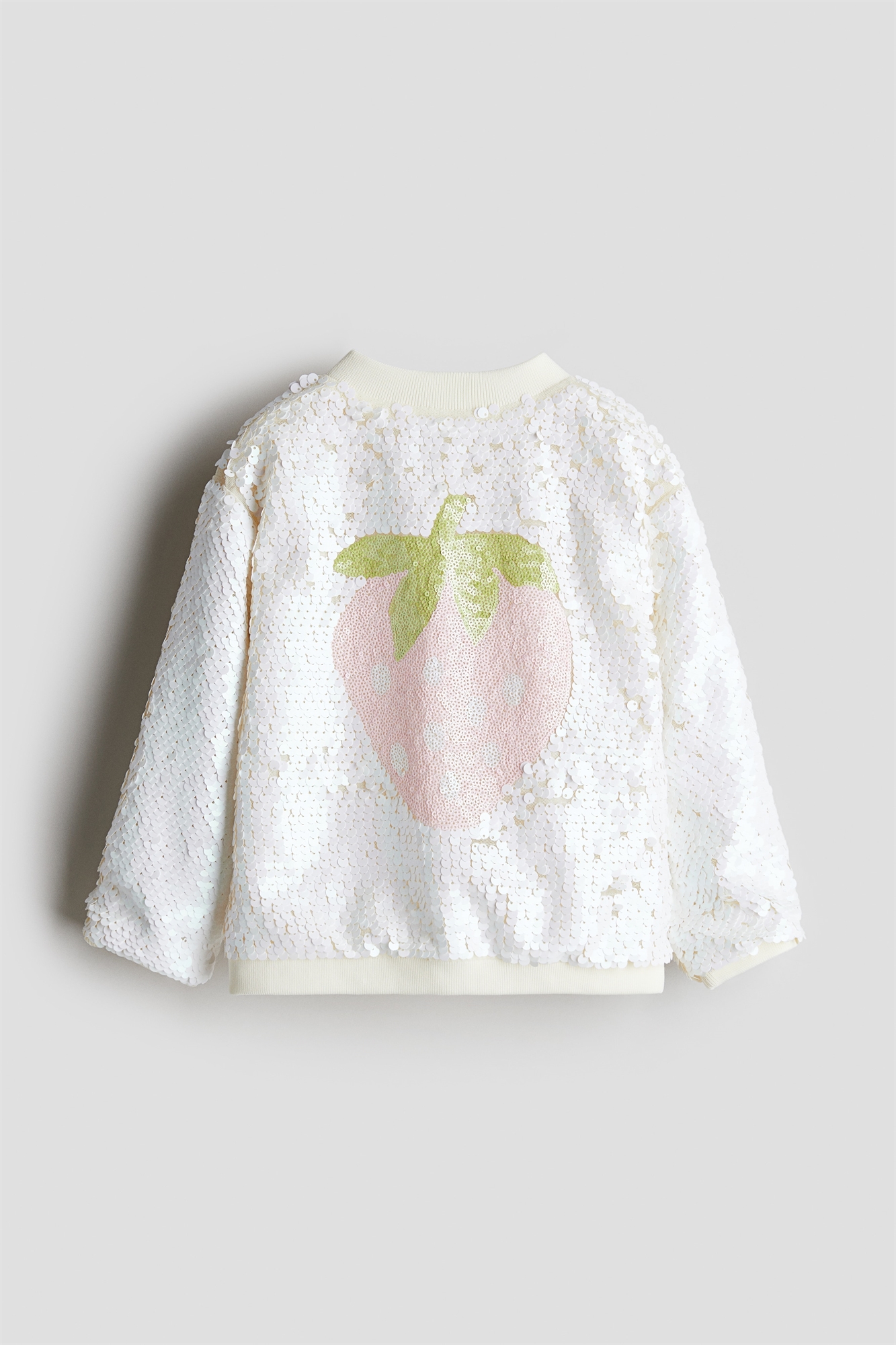 Свободная куртка-бомбер из сетки с блестками, с низким ребристым воротником, застежкой на молнию спереди и длинными рукавами. Ребристые манжеты и подол. На подкладке.