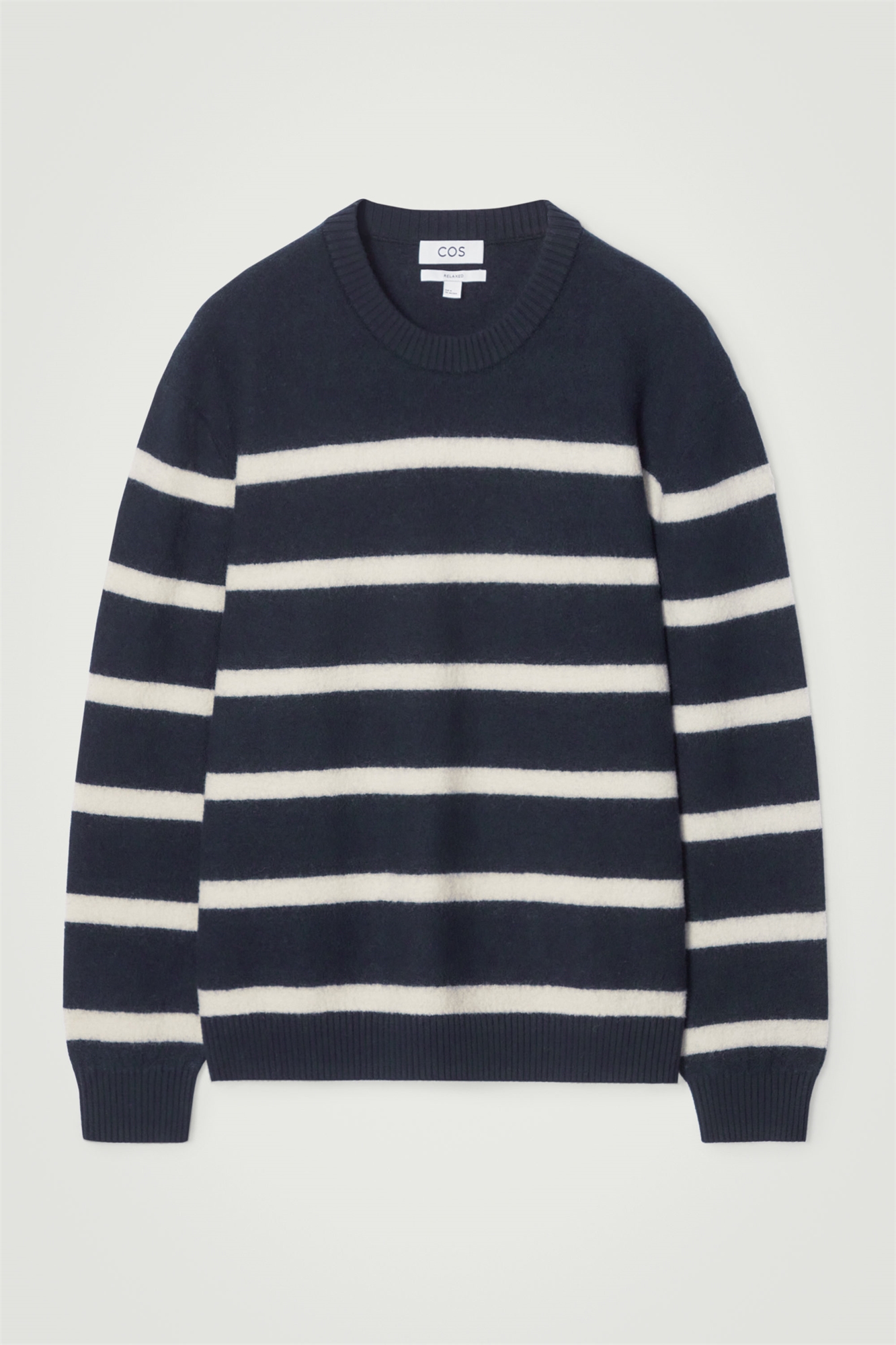 Немногие зимние вещи так же универсальны, как классический шерстяной джемпер. Этот полосатый вариант изготовлен из 100% шерсти RWS, которая была выварена для придания мягкости и тактильных ощущений. У него классический вырез и ребристая отделка, которая придает свободный силуэт. Свободный крой Эта вещь сертифицирована в соответствии со стандартом ответственной шерсти TE-00047206 (RWS) и содержит шерстяные волокна с ферм, сертифицированных в соответствии с правилами благополучия животных и сельскохозяйственными нормами Внешний материал: 100% шерсть RWS. Детали исключены/Сухая чистка Длина по спинке в размере M = 65 см/Модель носит размер M