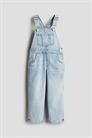 Джинсовые брюки из моющегося хлопкового денима с регулируемыми бретелями сзади, кнопками по бокам и фальшивой ширинкой. Открытый нагрудный карман, передние и задние карманы.