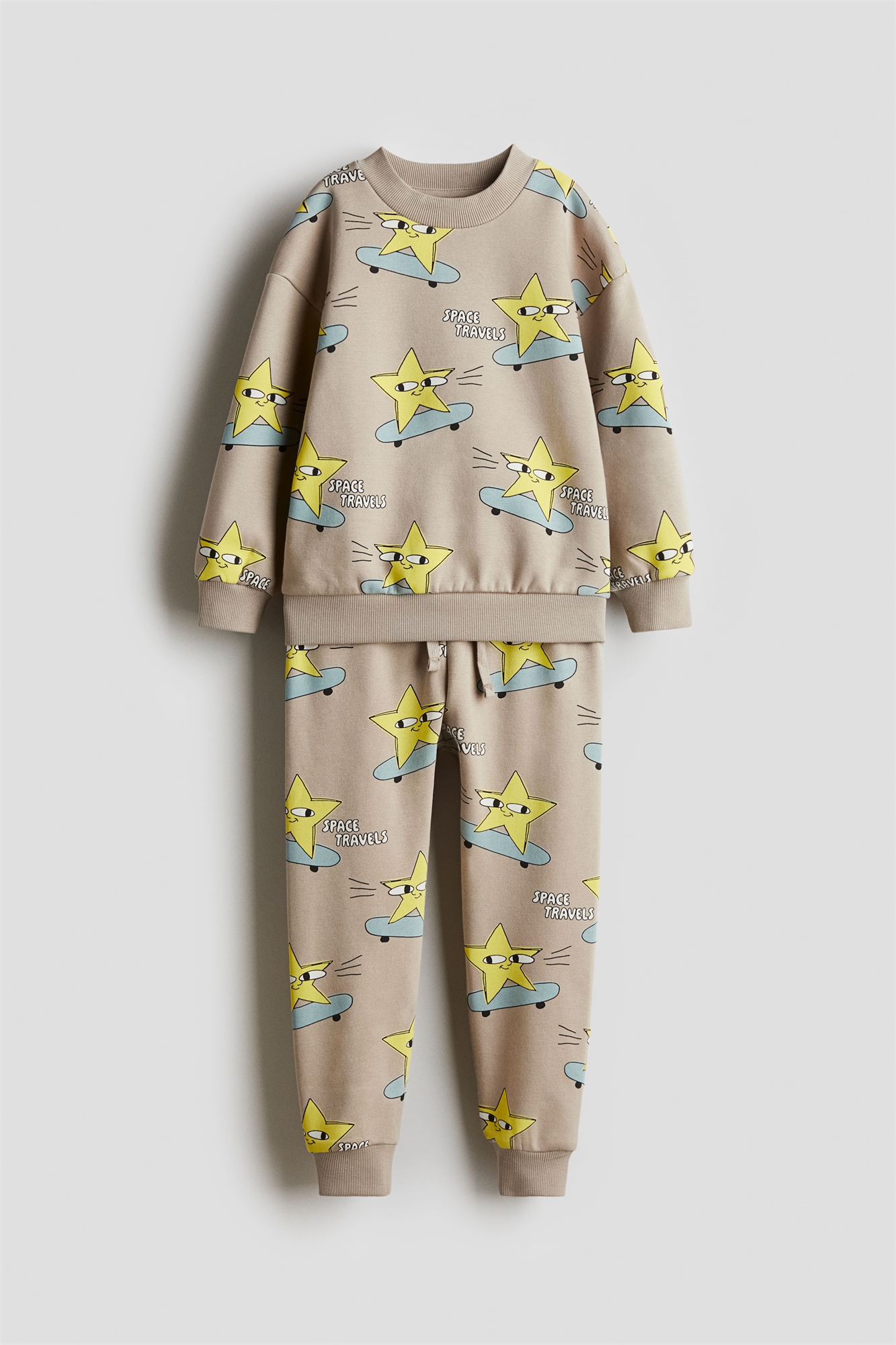 Уютный комплект из толстовки с мягкой ворсистой внутренней стороной. Топ с длинными рукавами, круглым вырезом и спущенными плечами. Окантовка по вырезу, манжетам и подолу. Низ с эластичным утягивающим поясом и ребристыми краями.