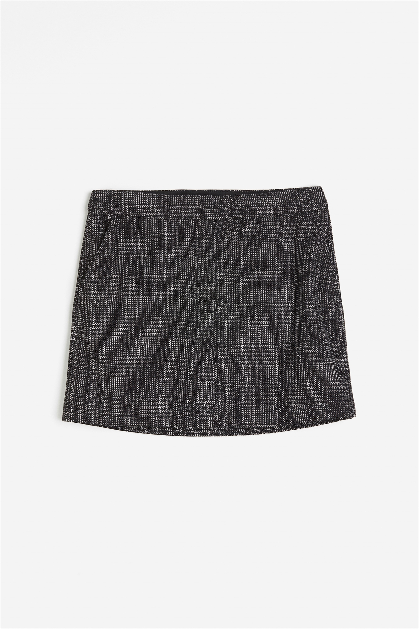 Короткая приталенная юбка из тканого материала со скрытой эластичной резинкой на талии, ширинка на молнии и скрытая застежка на крючок и глазок. Диагональные боковые карманы и втачные карманы сзади. Без подкладки.