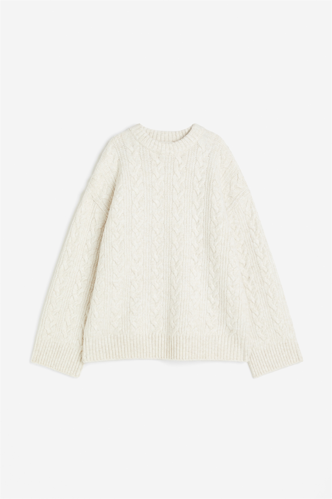 Джемпер оверсайз из мягкого ребристого трикотажа. С круглым вырезом, спущенными плечами и длинными широкими рукавами. Ребристые манжеты на вырезе, рукавах и подоле.