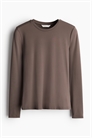 Облегающий топ из мягкого трикотажа с круглым вырезом и длинными рукавами. Узкая окантовка вокруг выреза.