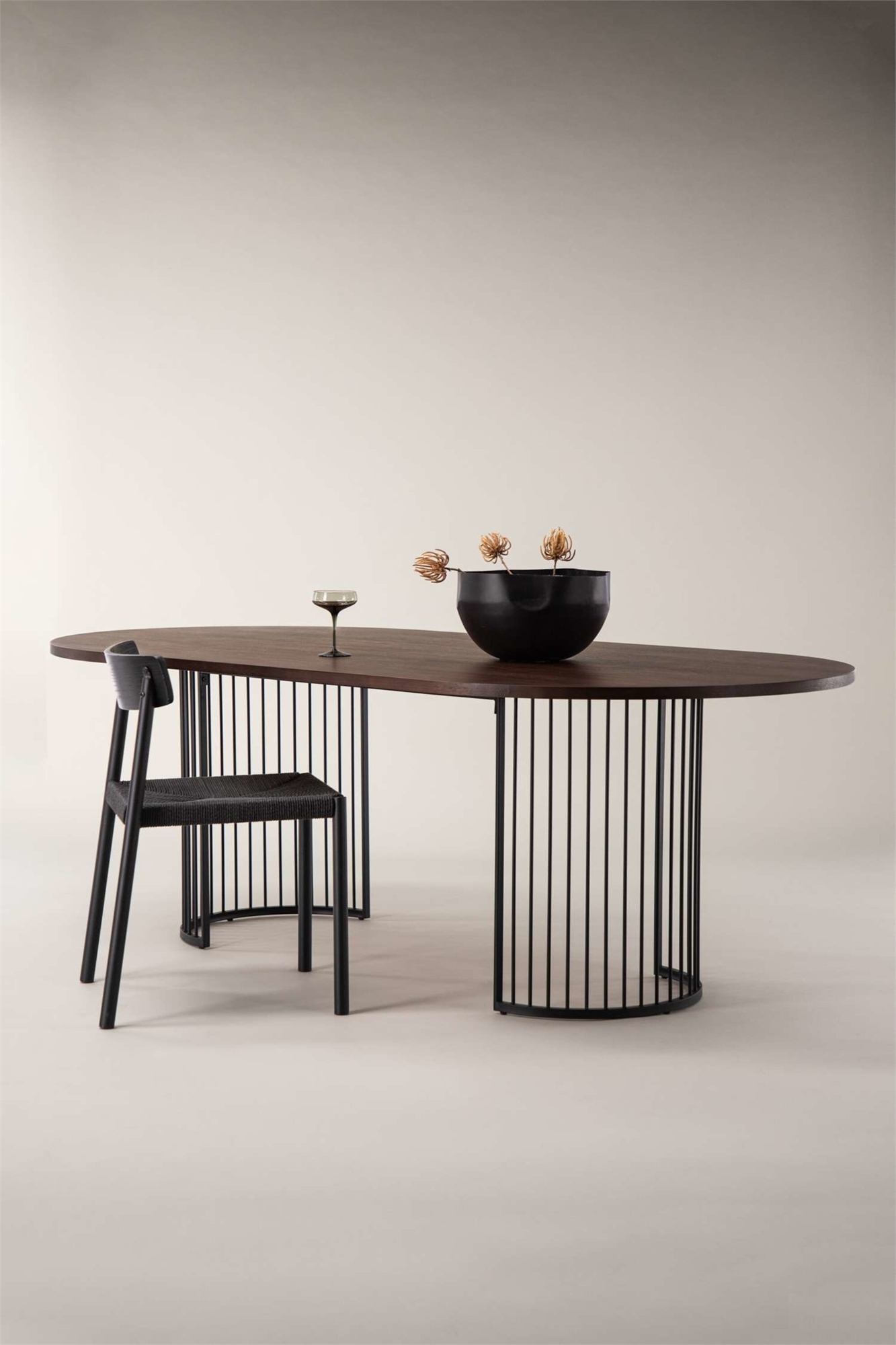 Hamneskär - современный обеденный стол, который привлекает внимание! Овальная столешница изготовлена из МДФ, а декоративное металлическое основание имеет форму полумесяца с ребристым рисунком. Стол выполнен в элегантном цвете, который придает помещению помпезный и величественный вид, но при этом хорошо сочетается с другими предметами обстановки. Добавьте свой личный штрих к обстановке, сочетайте его с парой удобных обеденных стульев и создайте впечатляющее зрелище в вашей гостиной! Размеры: Высота: 75 см, Ширина: 110 см, Глубина: 220 см.