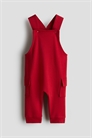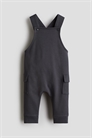 Полукомбинезоны из легкой хлопковой ткани в виде толстовки. Лямки с регулируемыми застежками спереди, карман-кенгуру и тесемки по краям.