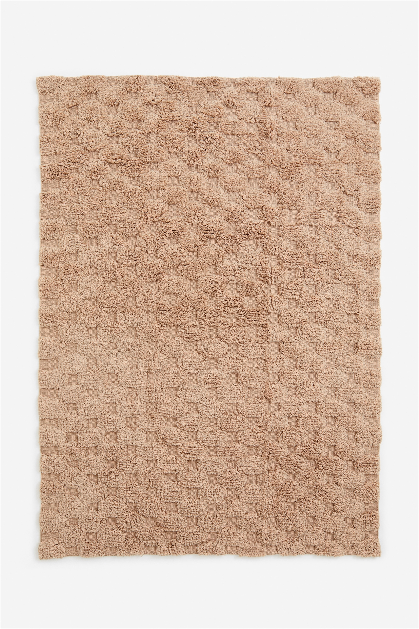 Плетеный ковер из смеси шерсти и хлопка с ворсистым узором.