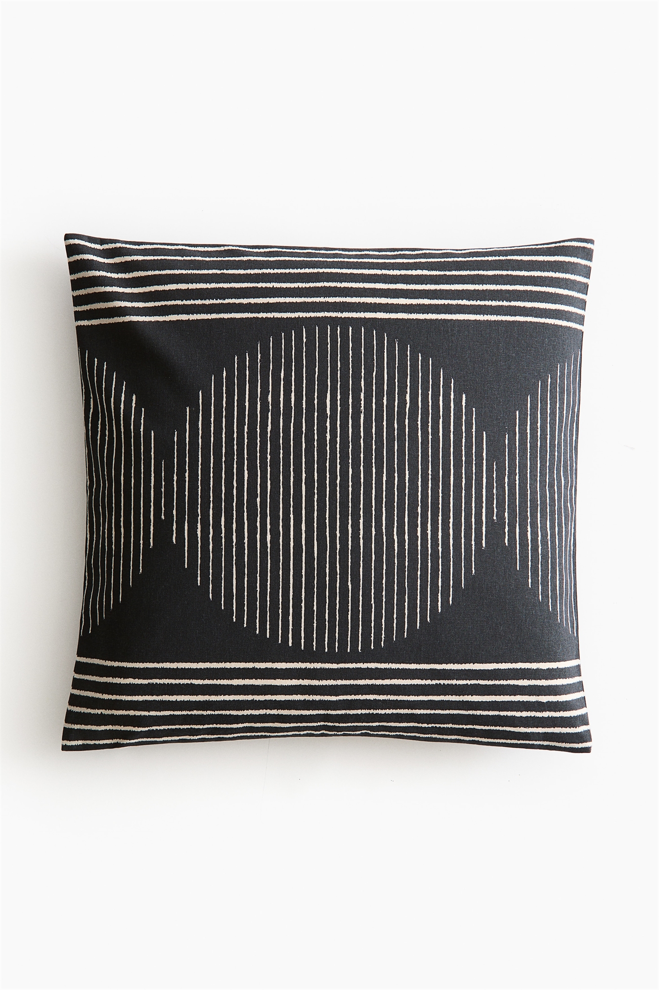 Чехол для подушки из хлопчатобумажной ткани с принтом по всему периметру и застежкой-молнией с одной стороны.