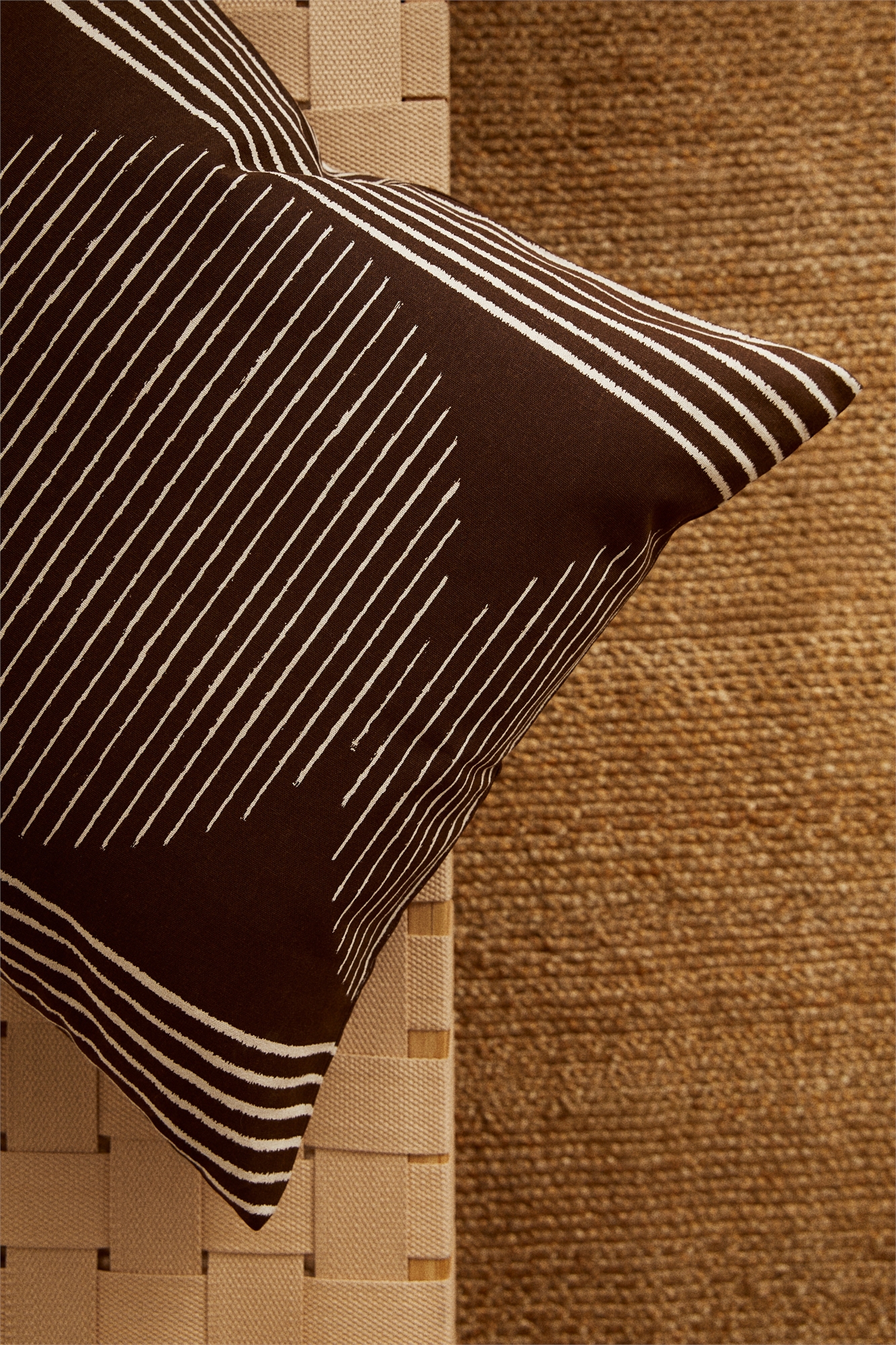 Чехол для подушки из хлопчатобумажной ткани с принтом по всему периметру и застежкой-молнией с одной стороны.
