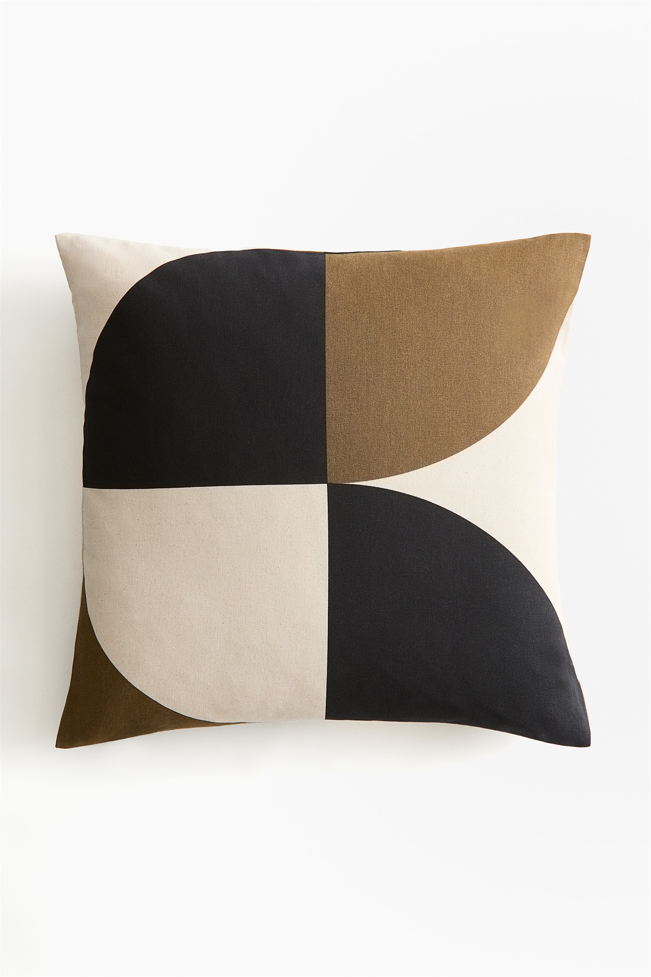 Чехол для подушки из хлопчатобумажной ткани с принтом по всему периметру и застежкой-молнией с одной стороны.
