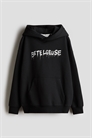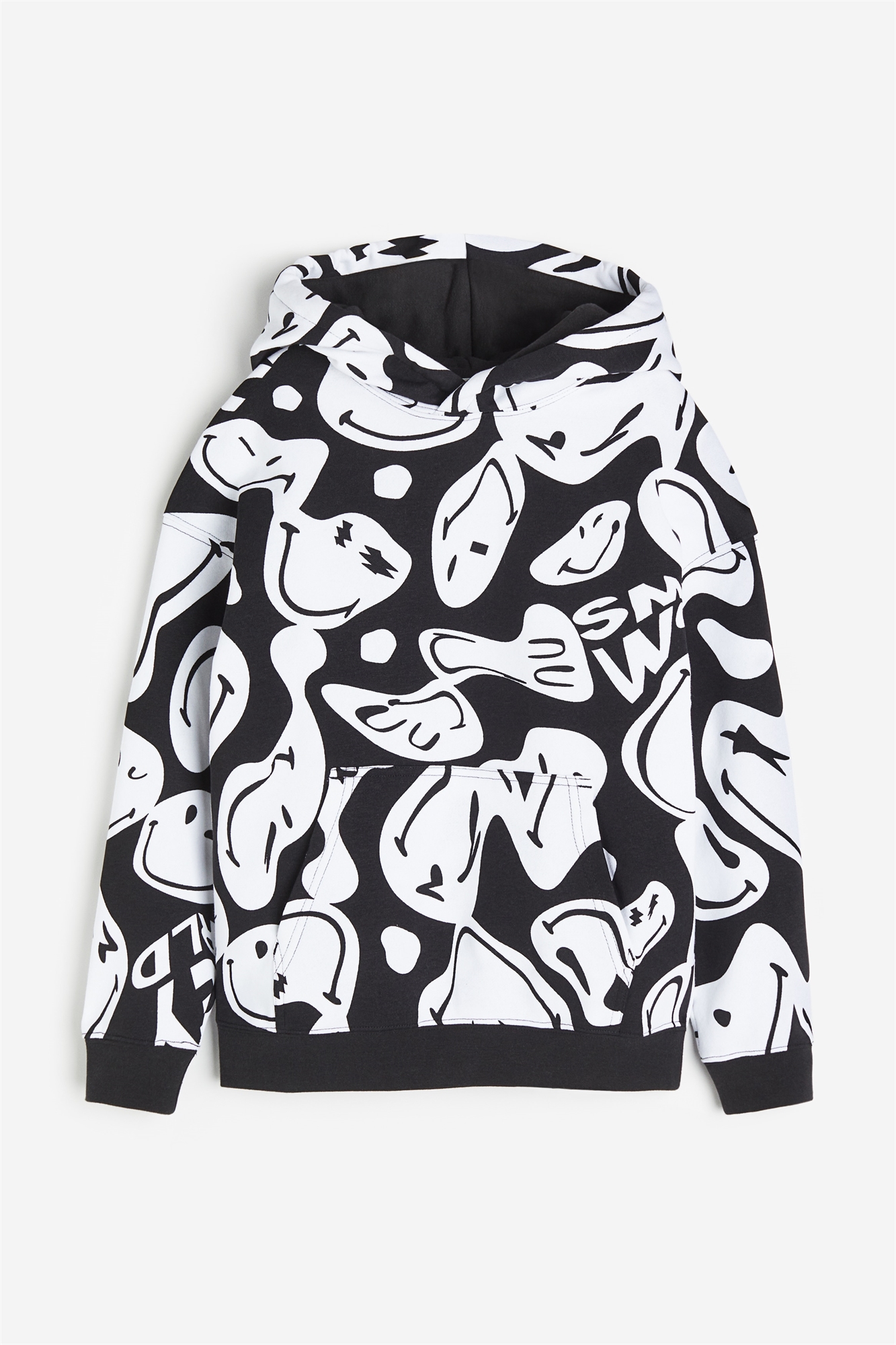 Толстовка свободного кроя из толстовочной ткани с вышитым мотивом спереди и мягким начесом внутри. Капюшон на трикотажной подкладке, отворачивающийся спереди, с опущенными плечами и карманом-кенгуру спереди. Длинные рукава, манжеты и подол отделаны тесемками.