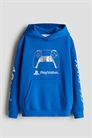Толстовка свободного кроя из толстовочной ткани с вышитым мотивом спереди и мягким начесом внутри. Капюшон на трикотажной подкладке, отворачивающийся спереди, с опущенными плечами и карманом-кенгуру спереди. Длинные рукава, манжеты и подол отделаны тесемками.