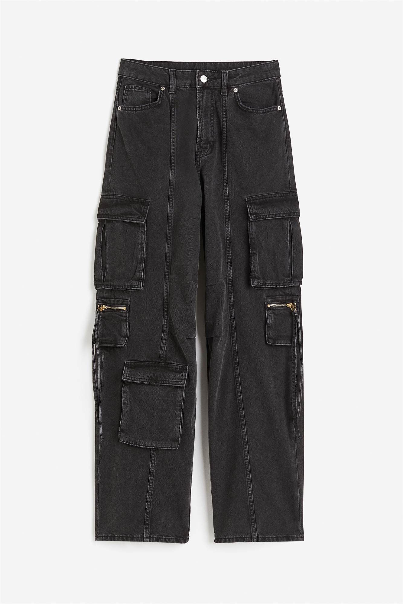 Свободные брюки с 5 карманами из хлопковой саржи с заниженной талией и ширинкой на молнии и пуговице. Широкие прямые ноги с видимыми швами спереди и несколькими втачными карманами, два на молнии с длинными ремешками в качестве застежек-молний.