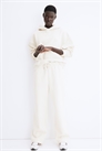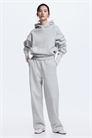 Тренировочные брюки из хлопковой смеси с мягкой начесом внутри. Эластичная планка и потайной шнурок на талии, боковые карманы и прямые ноги.