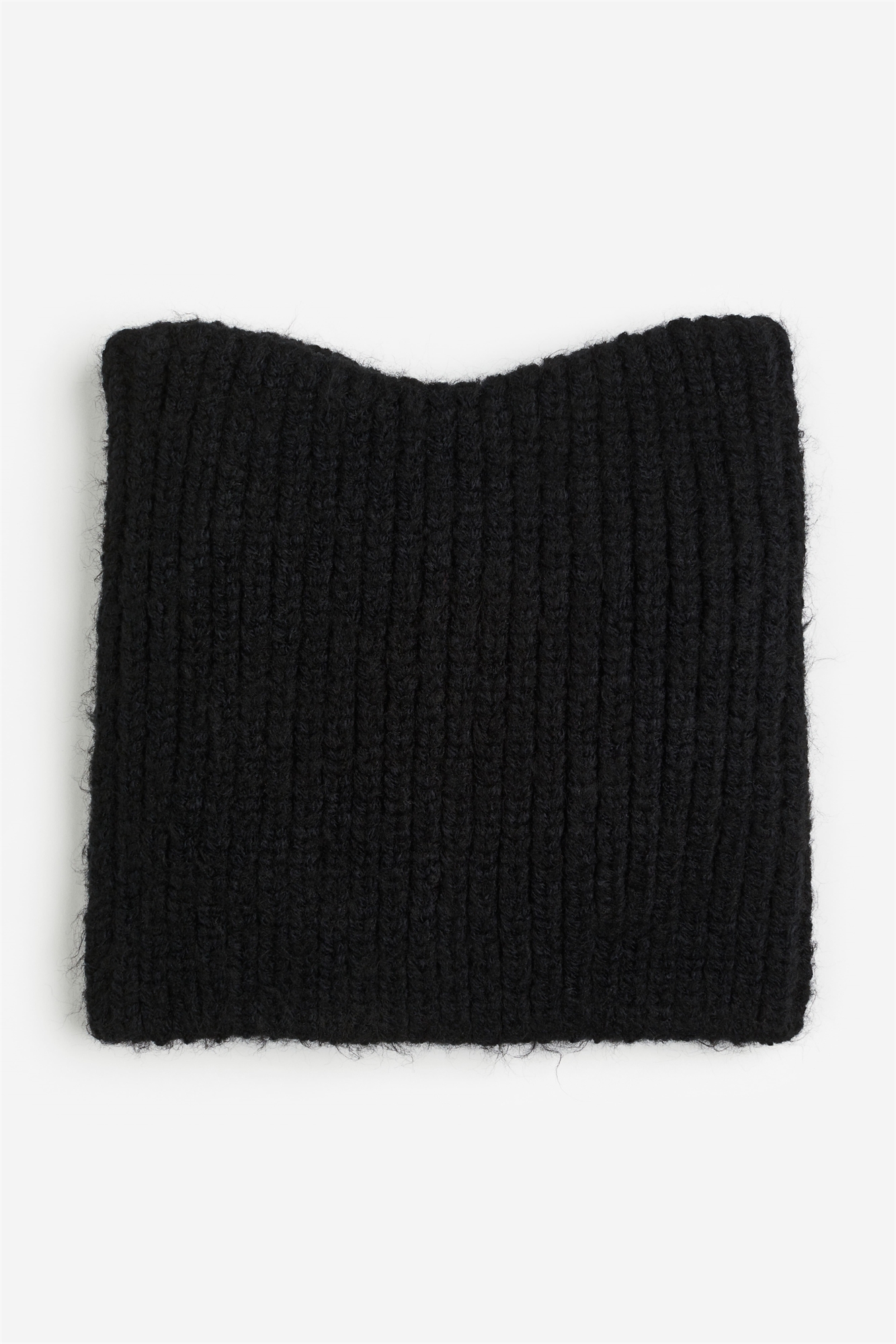 Шапка из мягкого трикотажа с острыми деталями в виде ушей на макушке.