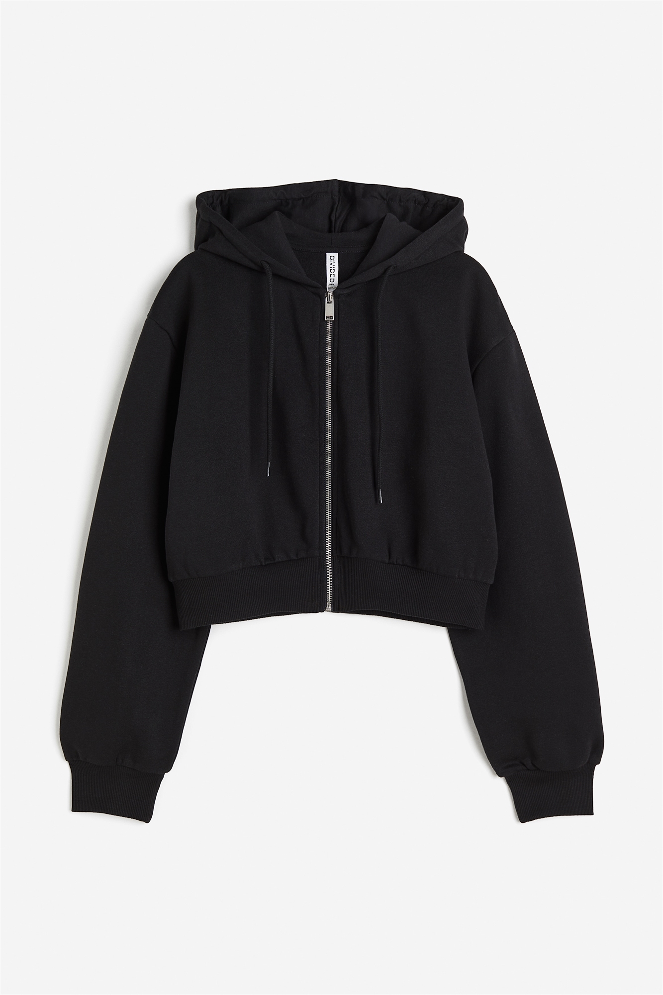 Короткая толстовка с капюшоном из мягкой ткани с начесом. Капюшон со шнурком и подкладкой из джерси, застежка на молнию спереди и приспущенные плечи. Манжеты и подол в рубчик. Свободный крой.