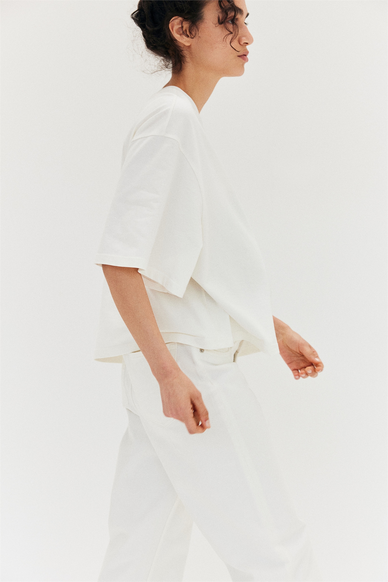 Джинсы с 5 карманами и свободным кроем из хлопкового денима, слегка тянущегося для большей легкости движений, но надежно сохраняющего форму на ногах. Широкие штанины с обычной посадкой от талии до бедер и прямым, широким кроем от бедра до подола. Заниженная талия, ширинка на молнии и пуговице. Обычная длина, рассчитанная на то, чтобы доходить до верхней части стопы с небольшим запасом или вообще без запаса. Джинсы можно носить как во время беременности, так и после нее.