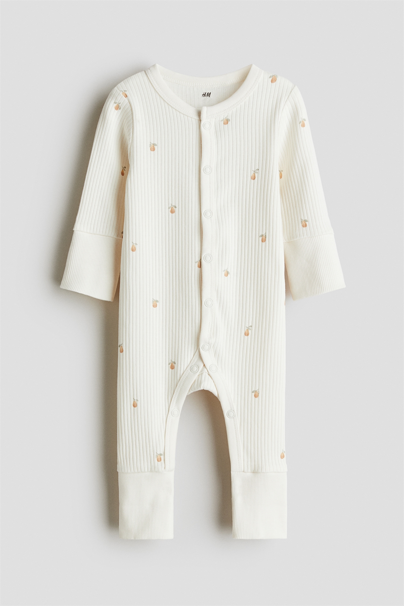 Ромпер с длинными рукавами из мягкого, ребристого хлопкового джерси с застежками на кнопках спереди и на ножках. Удлиненные манжеты и подолы, которые можно отгибать по мере роста ребенка.