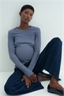 Приталенный топ из ребристого джерси из смеси хлопка и вискозы с круглым вырезом и длинными рукавами.