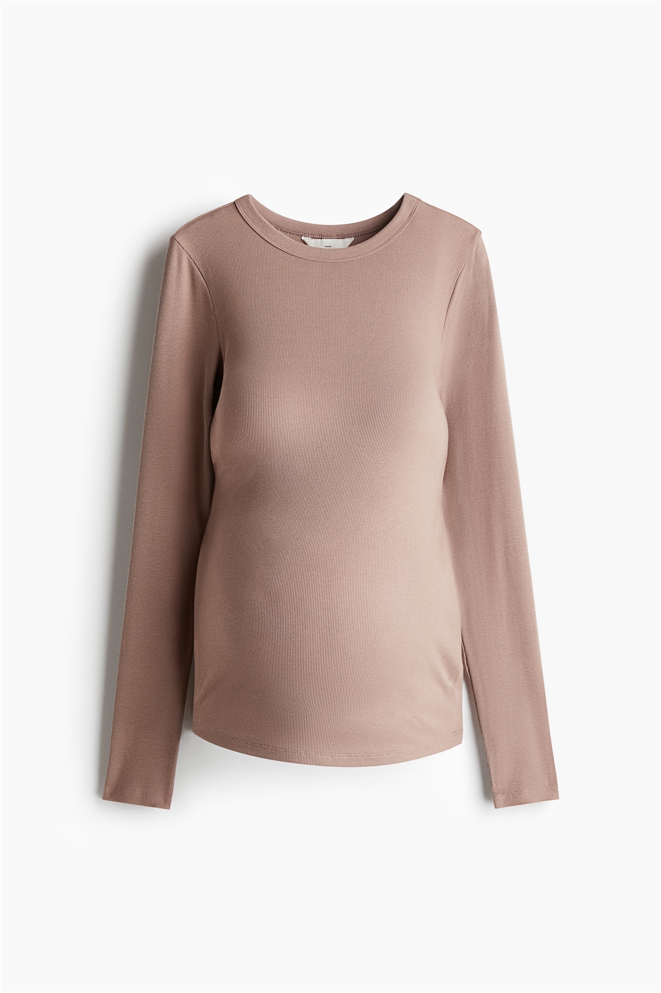 Приталенный топ из ребристого джерси из смеси хлопка и вискозы с круглым вырезом и длинными рукавами.
