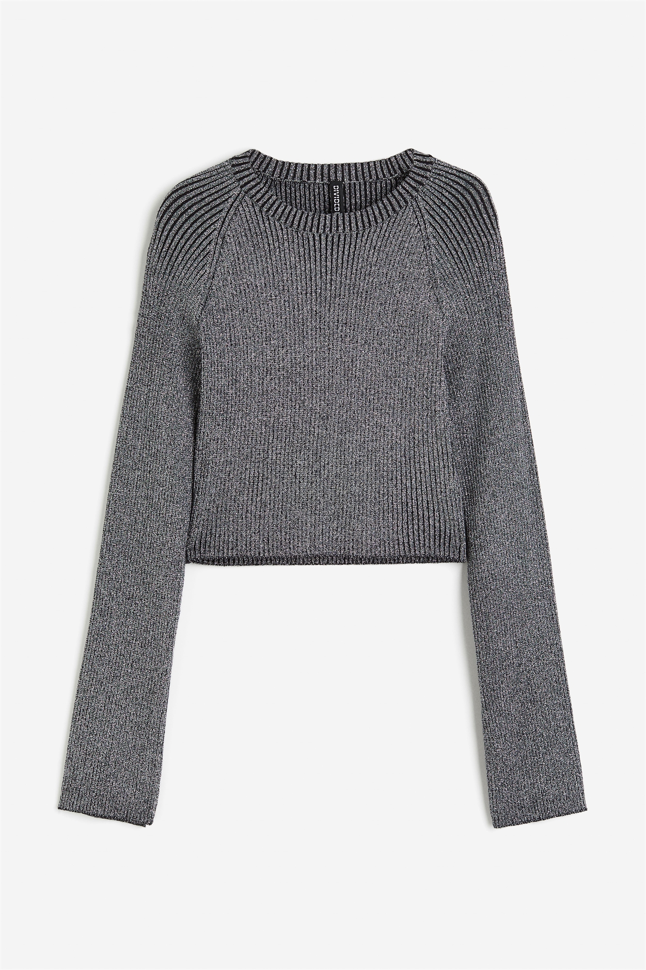 Топ из ребристого трикотажа с круглым вырезом, длинными рукавами реглан и прямым подолом.