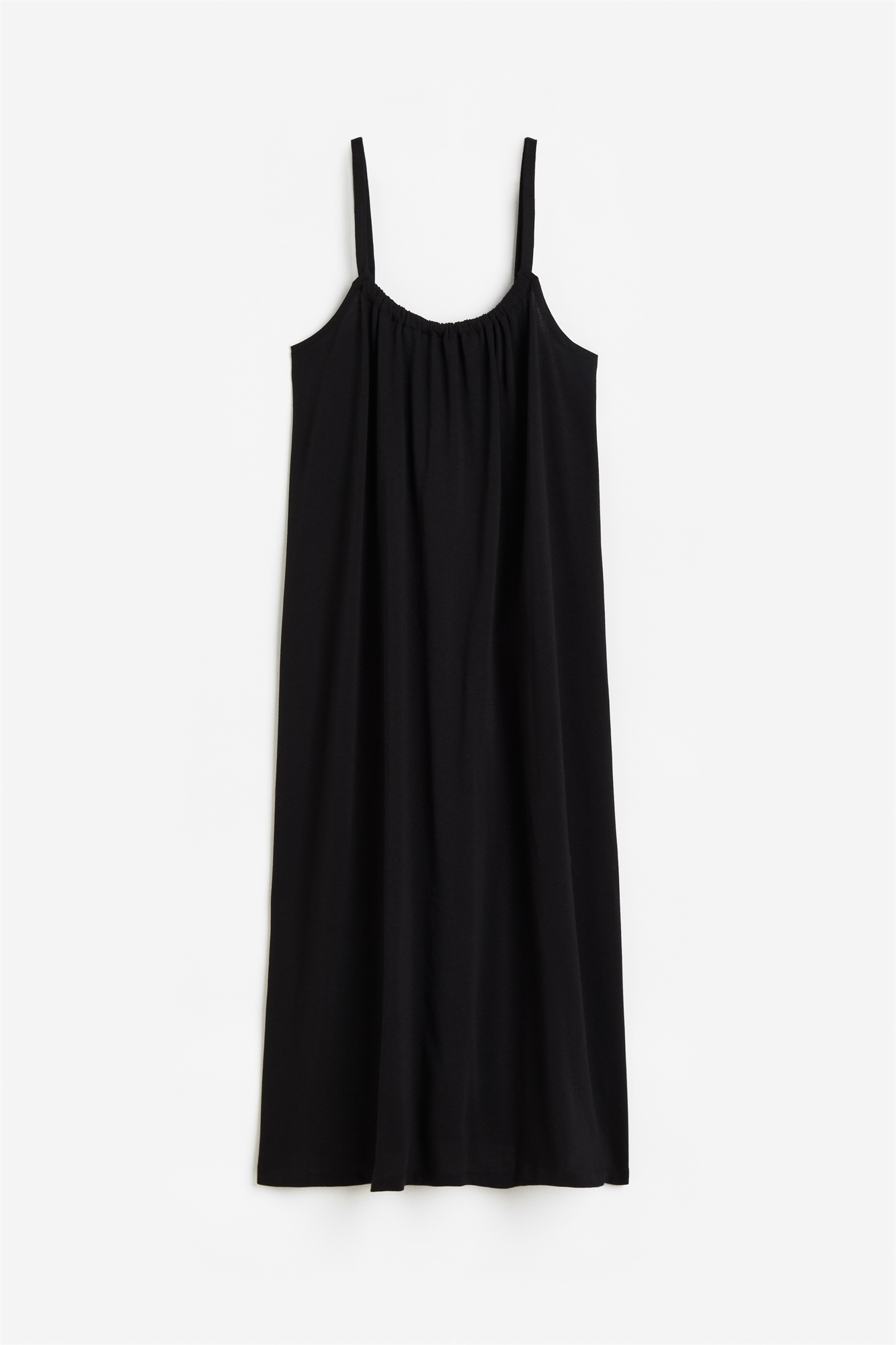 Платье длиной до колена из джерси с собранным вырезом, узкими бретелями и более глубоким разрезом сзади.