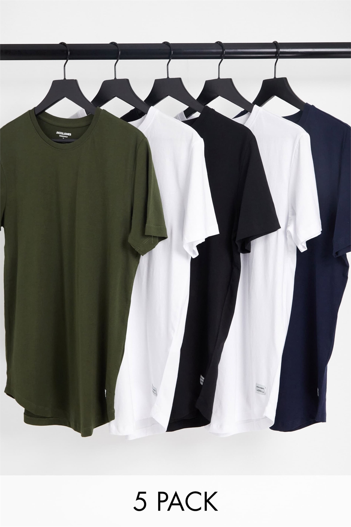 Футболка с круглым вырезом и удлиненным подолом, 5 штук в упаковке