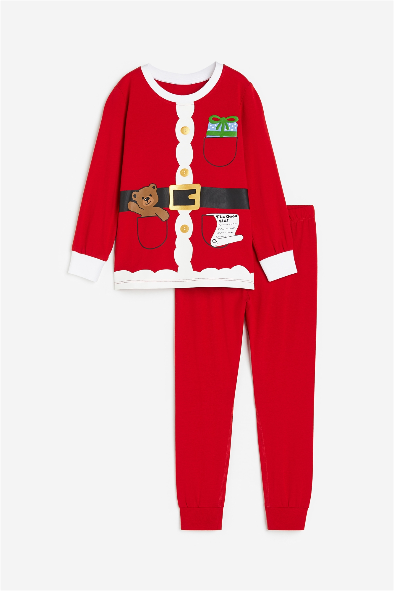 Пижама из мягкого хлопкового джерси с набивным рисунком. Верхняя часть с длинными рукавами и окантовкой по вырезу горловины и манжетам. Нижние штанишки с эластичной резинкой на талии и ребристыми каймами.