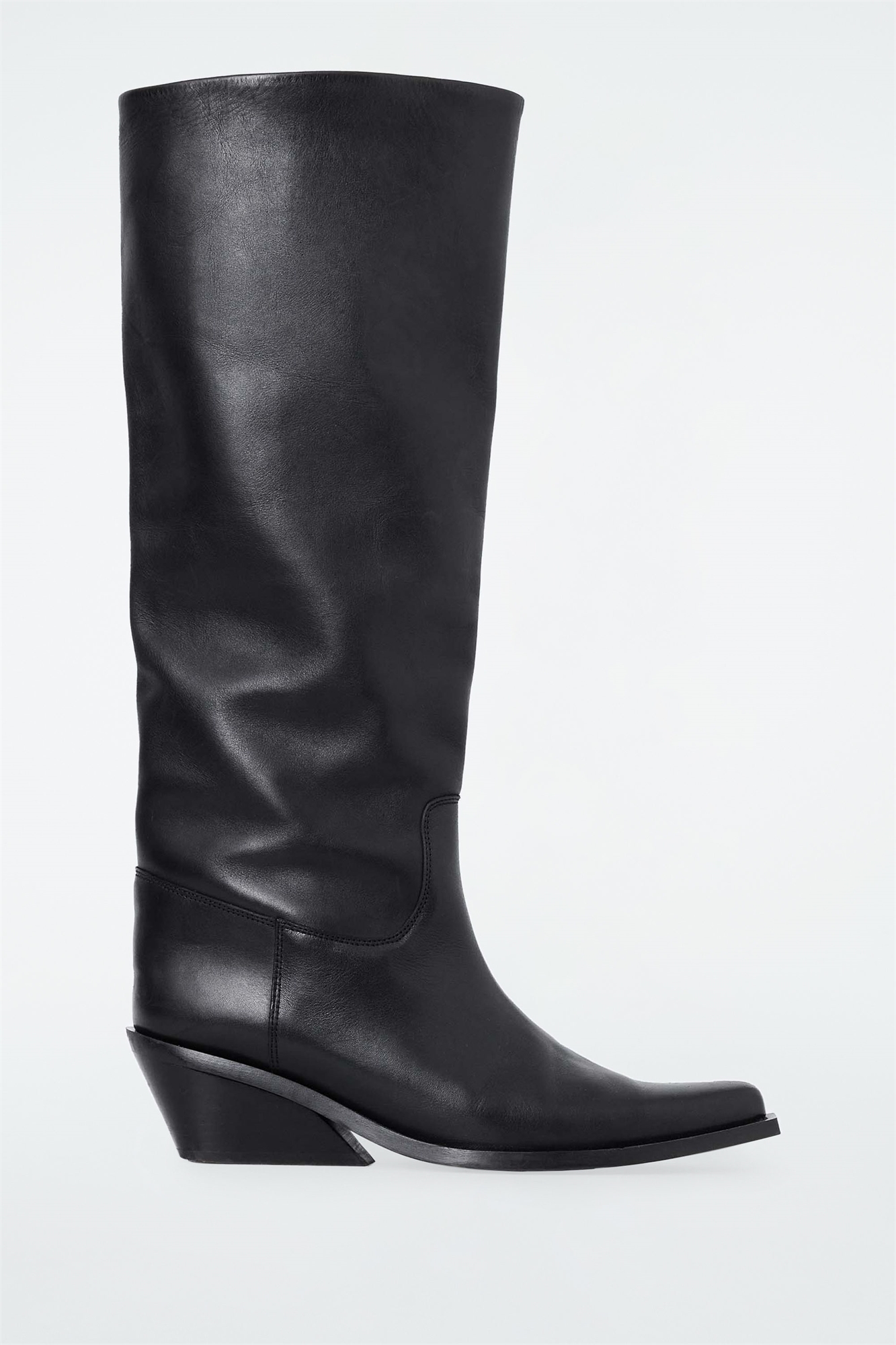 Ковбойские сапоги - ключевой элемент коллекции COS осень-зима 2023. Заостренные носки, кубинские каблуки и минималистичный дизайн позволяют сочетать их практически со всем, что есть в вашем гардеробе. Они изготовлены нашими надежными мастерами в Португалии из эластичной кожи без хрома. Мягкая стелька для комфорта в течение всего дня Резиновая подошва COS поддерживает ответственное производство через Leather Working Group Высота каблука: 4 см.