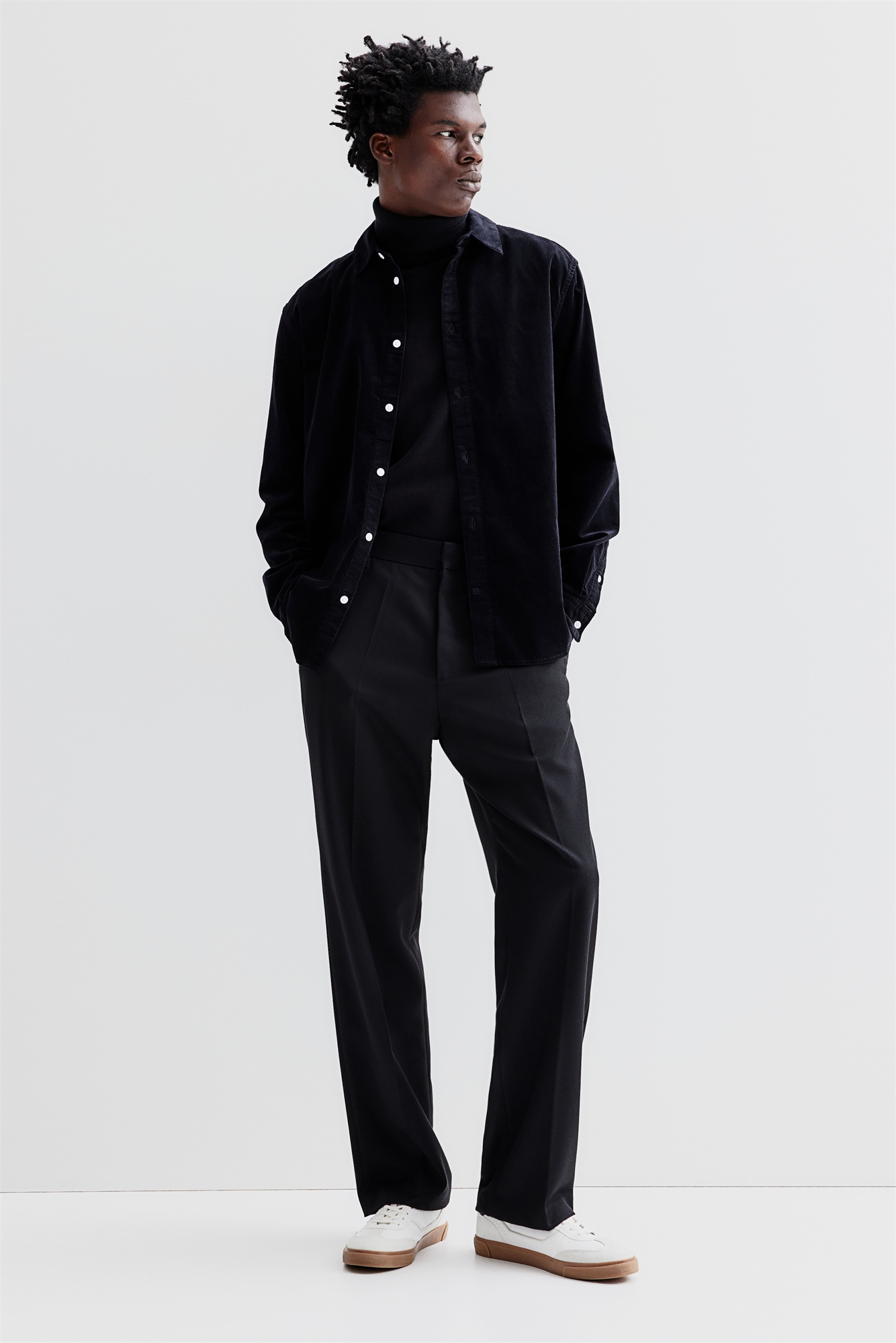 Рубашка из мягкого хлопкового вельвета с отложным воротником, классической планкой на пуговицах и задним ярмом. Длинные рукава с регулируемыми манжетами на пуговицах и пуговицей на прорези рукава. Закругленный подол. Обычный крой.