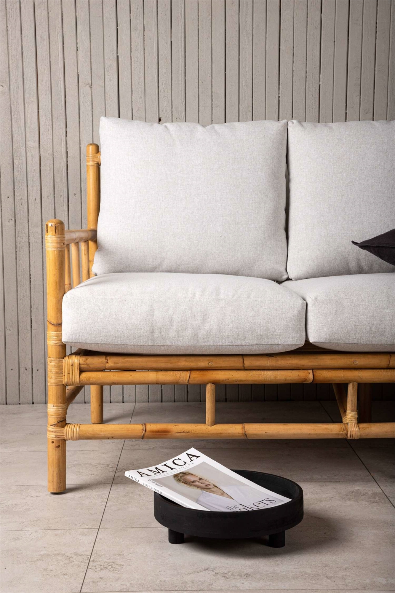Обставьте патио классическим бамбуковым диваном с роскошным внешним видом из серии Cane! Этот удобный трехместный диван создает привлекательную тропическую атмосферу благодаря своему изысканному дизайну. Белые подушки выполнены из мягкой полиэфирной ткани. Каркас выполнен из бамбука натурального цвета, а природный материал придает каждому отдельному предмету мебели уникальный характер. Стильный и шикарный диван на открытом воздухе, который просто притягивает взгляд и повышает комфорт поздним летним вечером. Размеры: глубина: 77 см, высота: 88 см, ширина: 180 см.