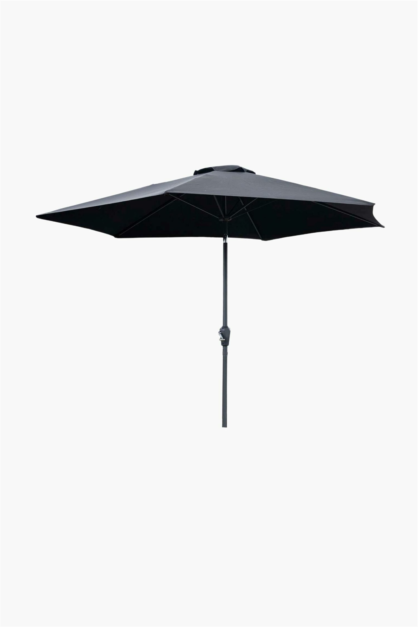Прочный зонт черного цвета, может поворачиваться вокруг своей оси. Регулируемый, различных цветов, хорошо защищает от солнца и легко моется. Размеры: Диаметр: 300 см.