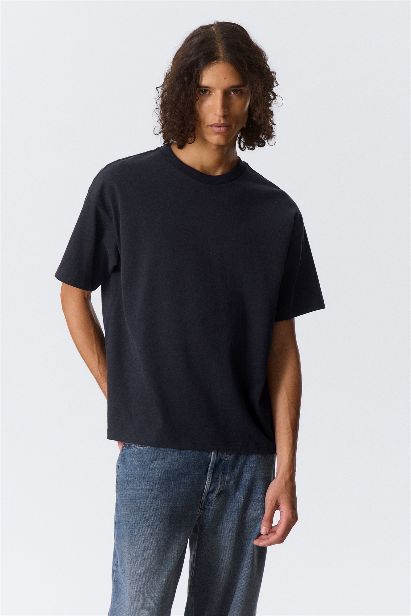 Классическая футболка больших размеров из мягкого плотного хлопкового джерси. Свободный крой с опущенными плечами и широкими рукавами.