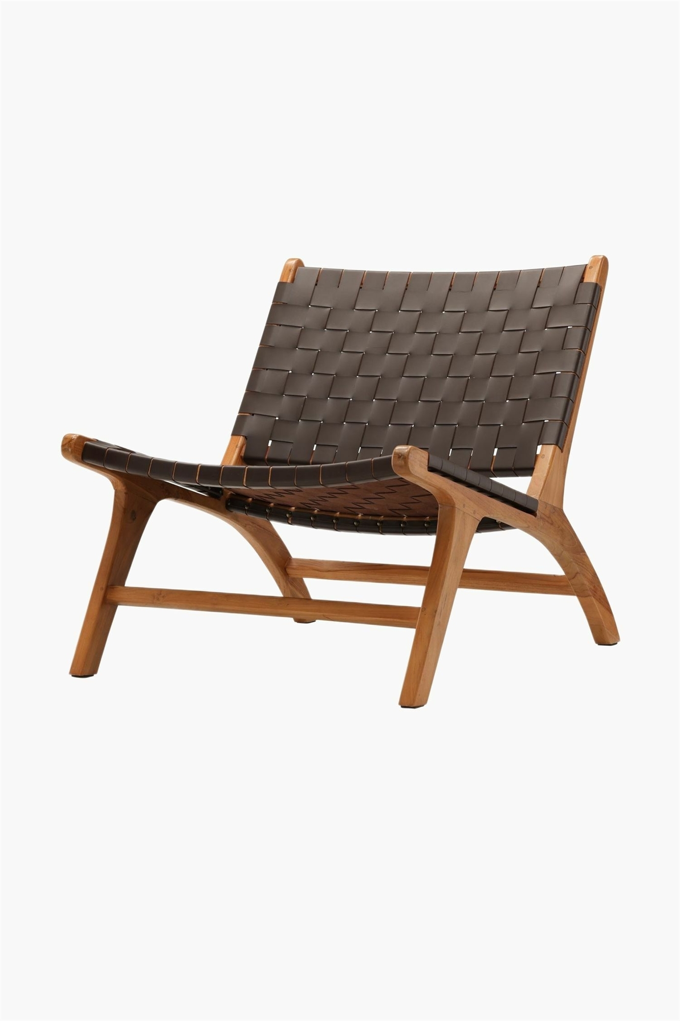 Создайте модный образ в вашей гостиной с помощью этого роскошного кресла! Это кресло с модным дизайном имеет плетеную спинку и сиденье из коричневого полиуретана и каркас из красивого тика. Слегка наклонный дизайн придает этому креслу привлекательный и расслабляющий эффект. Вы получаете современный и очаровательный предмет мебели для вашего дома! Размеры: высота 69 см, ширина: 65 см, глубина: 77 см