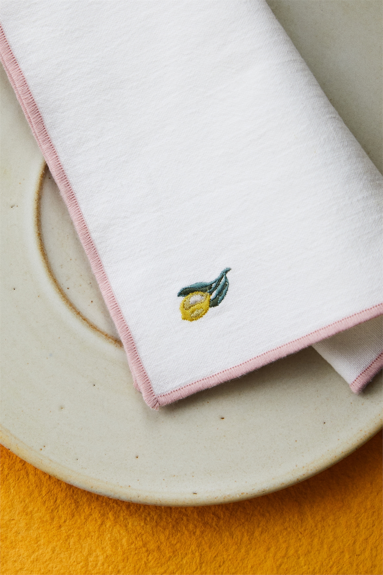 Набор из четырех салфеток из хлопка и льна с вышитым мотивом и оверлочными краями.