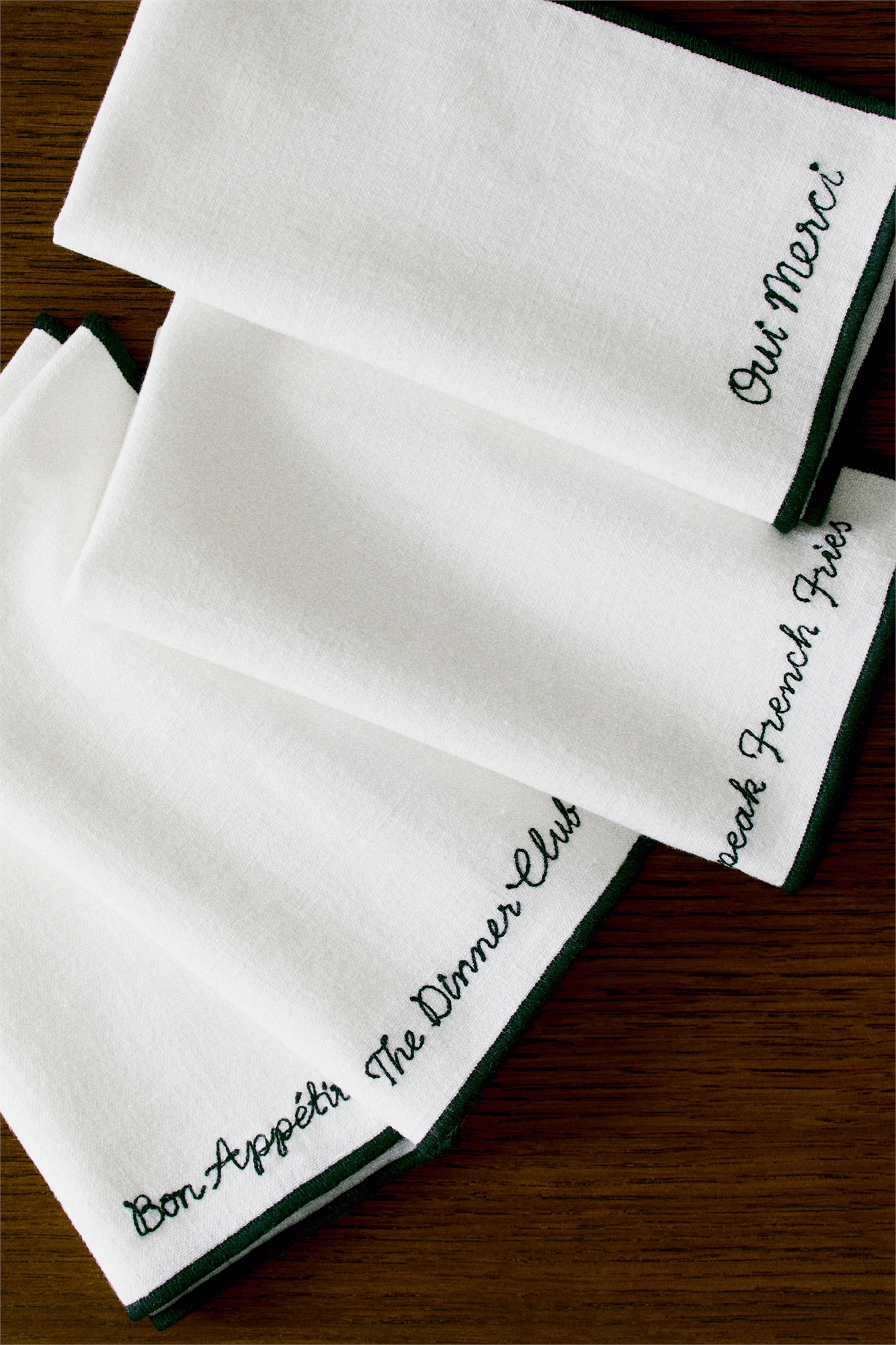 Набор из четырех салфеток из хлопка и льна с вышитым мотивом и оверлочными краями.