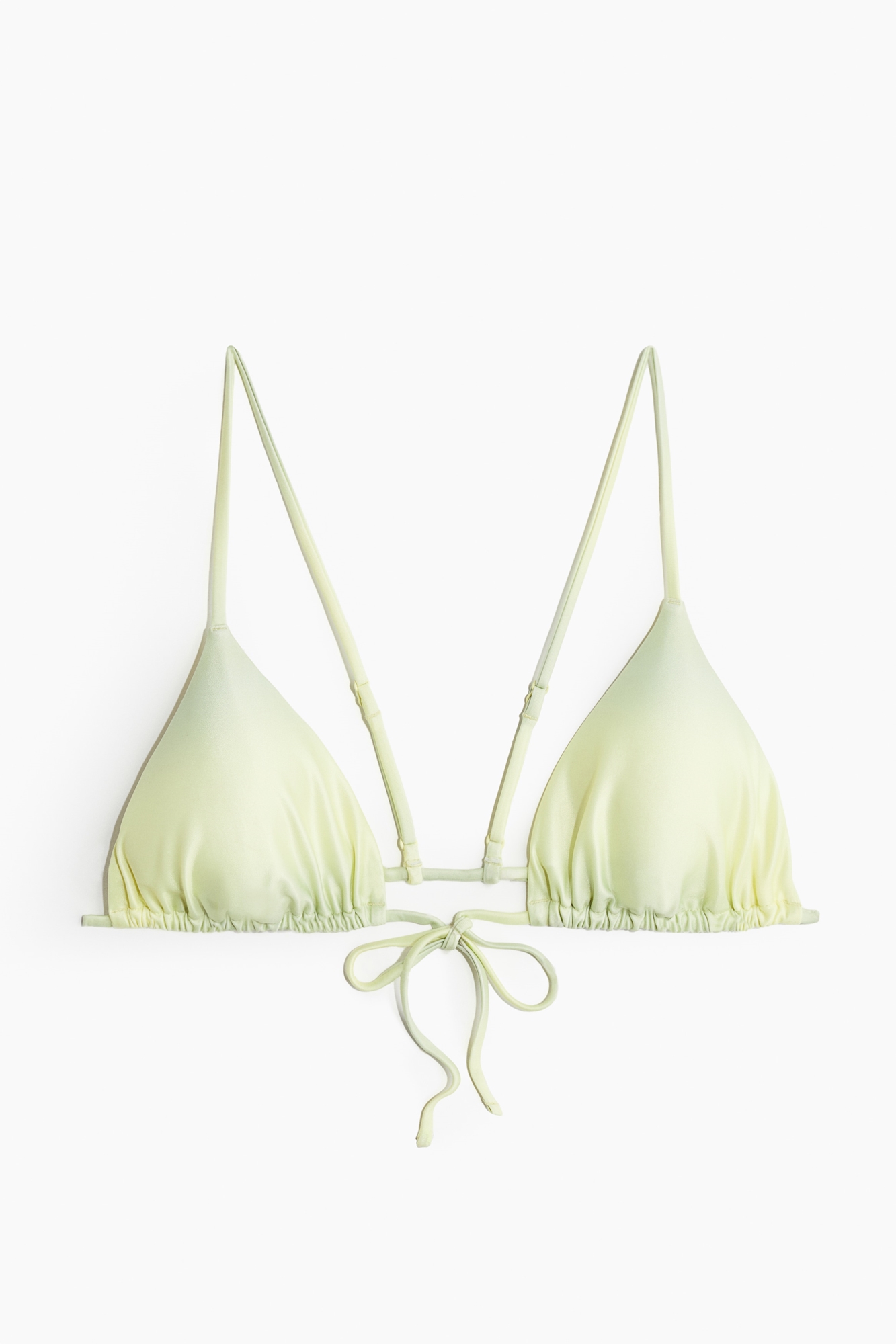 Непромокаемый бикини-треугольник на подкладке с узкими регулируемыми бретелями и завязками спереди. Чашечки со съемными вставками, придающими форму бюсту и обеспечивающими хорошую поддержку.