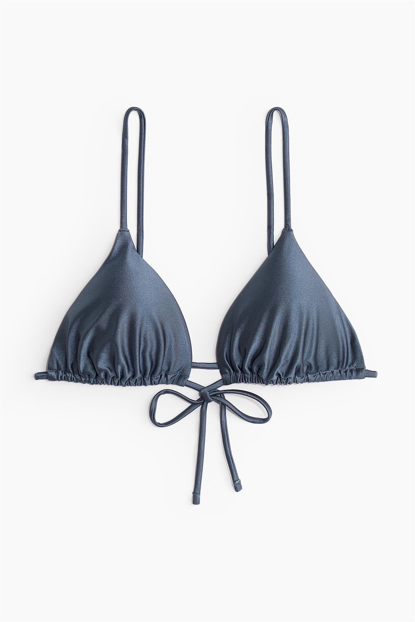Непромокаемый бикини-треугольник на подкладке с узкими регулируемыми бретелями и завязками спереди. Чашечки со съемными вставками, придающими форму бюсту и обеспечивающими хорошую поддержку.