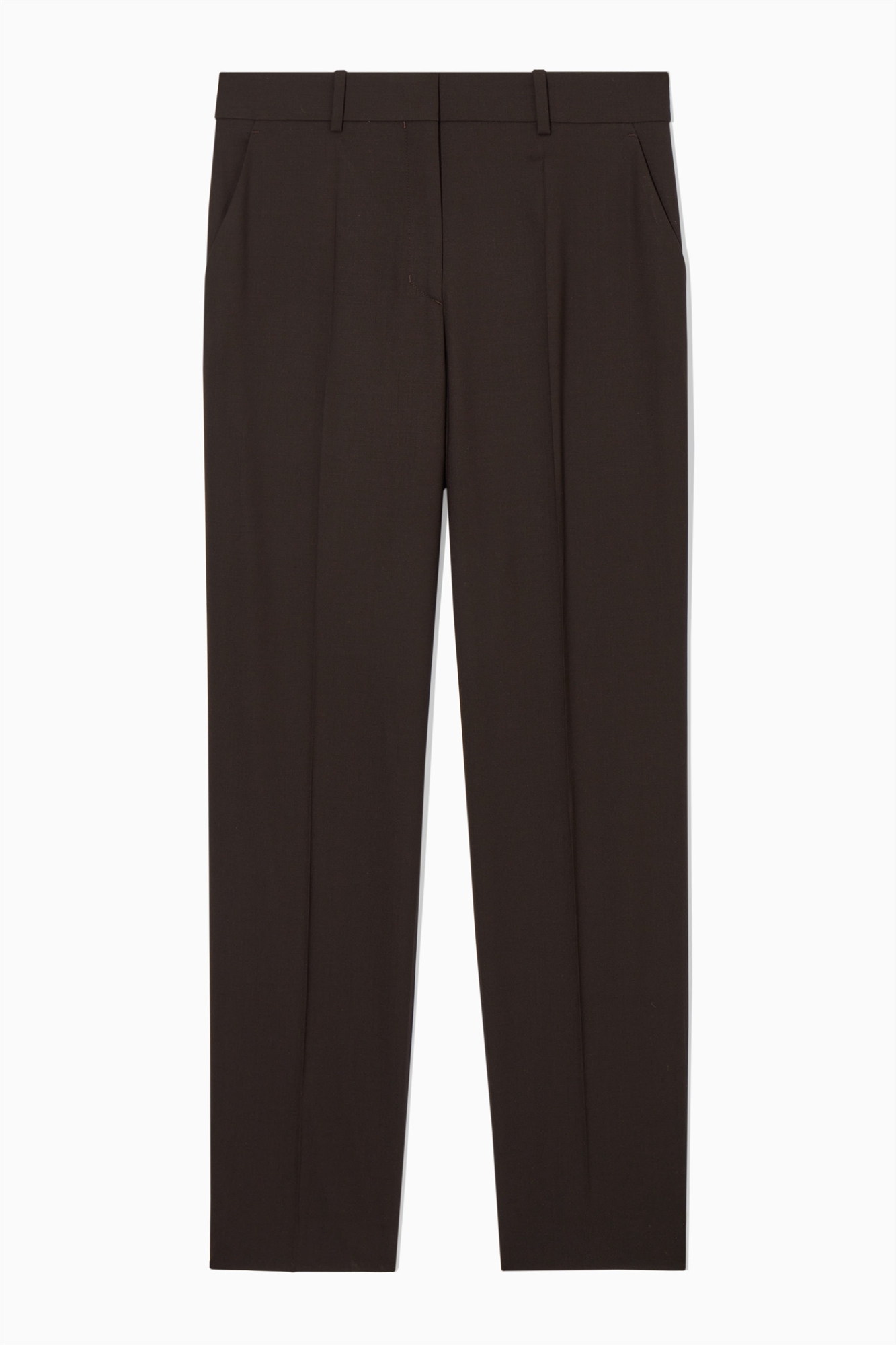 Эти брюки, сшитые по индивидуальному заказу, имеют низкую посадку на талии и выполнены в стойком темно-коричневом цвете. Они изготовлены из шерсти с добавлением стрейча, имеют прямые ноги, аккуратные центральные складки и регулируемую завязку на поясе, чтобы вы могли идеально подогнать их по фигуре. Для создания полноценного костюма носите их с блейзером. Зауженный крой, прямые ноги Косые боковые карманы, задний накладной карман Сертифицированы в соответствии со стандартом ответственной шерсти для защиты благополучия овец и окружающей среды 96% шерсти RWS, 4% эластана / Машинная стирка Внутренняя длина ноги размера EU 36 составляет 77,8 см / Модель носит размер EU 36