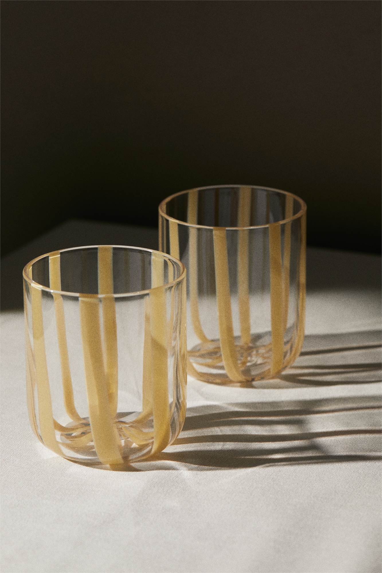 Стеклянные стаканы с рисунком мягких форм в спокойной цветовой гамме. Объем 310 мл. Диаметр 8 см. Высота 10,5 см.
