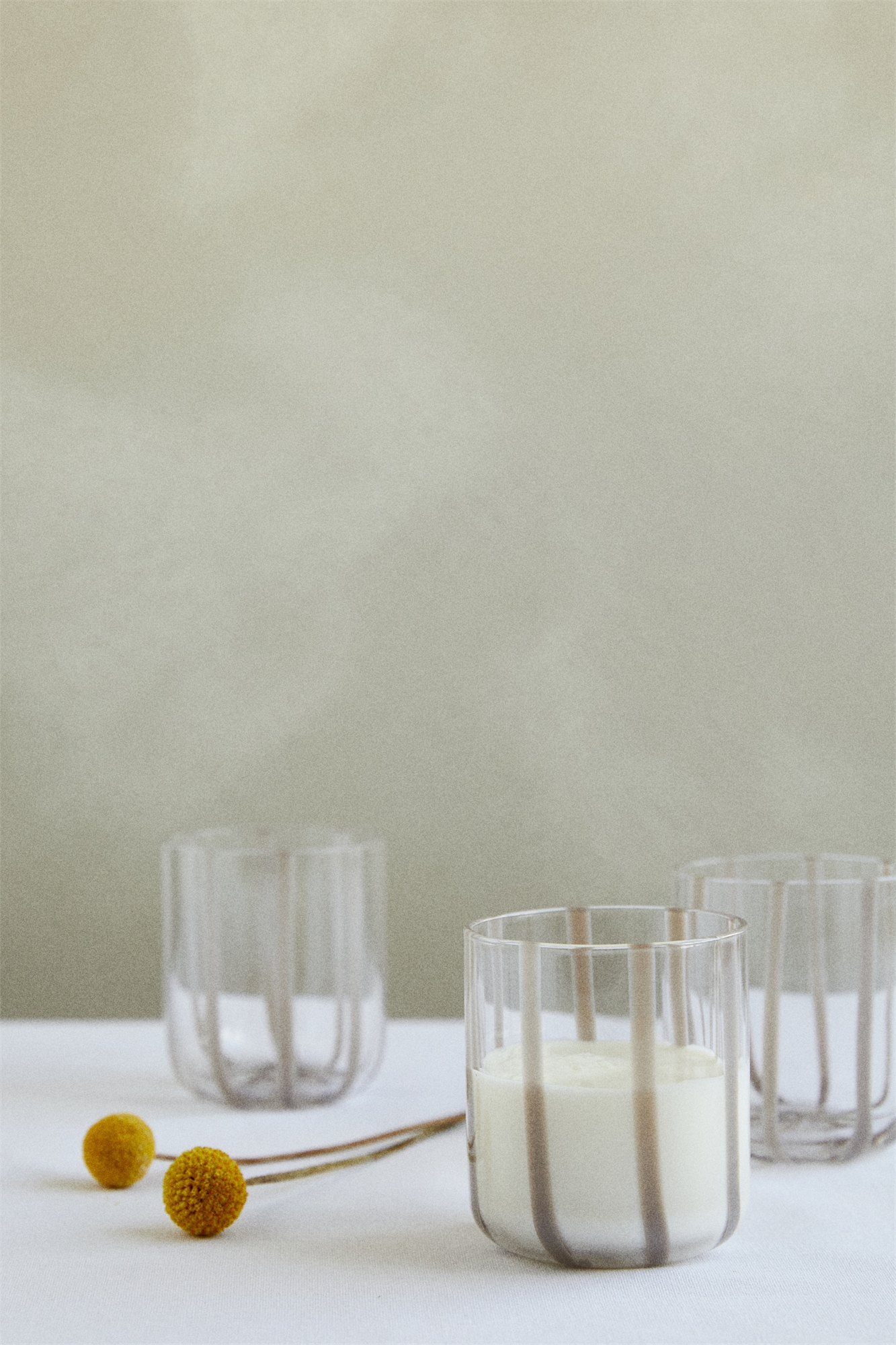 Стеклянные стаканы с рисунком мягких форм в спокойной цветовой гамме. Объем 310 мл. Диаметр 8 см. Высота 10,5 см.