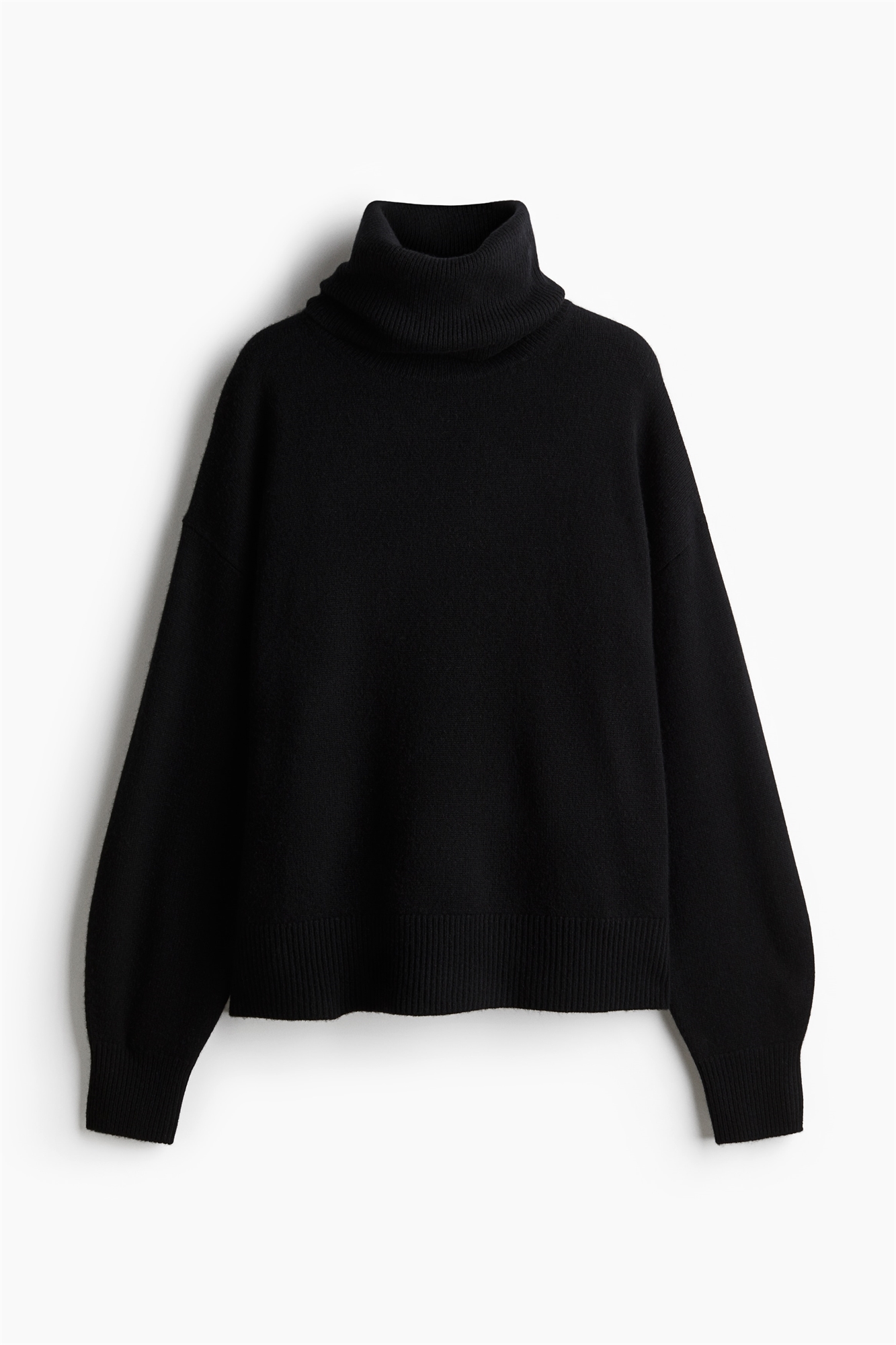 Джемпер из мягкого трикотажа из смеси кашемира и шерсти. Свободный крой с ребристой горловиной-поло, спущенными плечами и длинными, слегка сужающимися рукавами. Ребристые манжеты и подол.