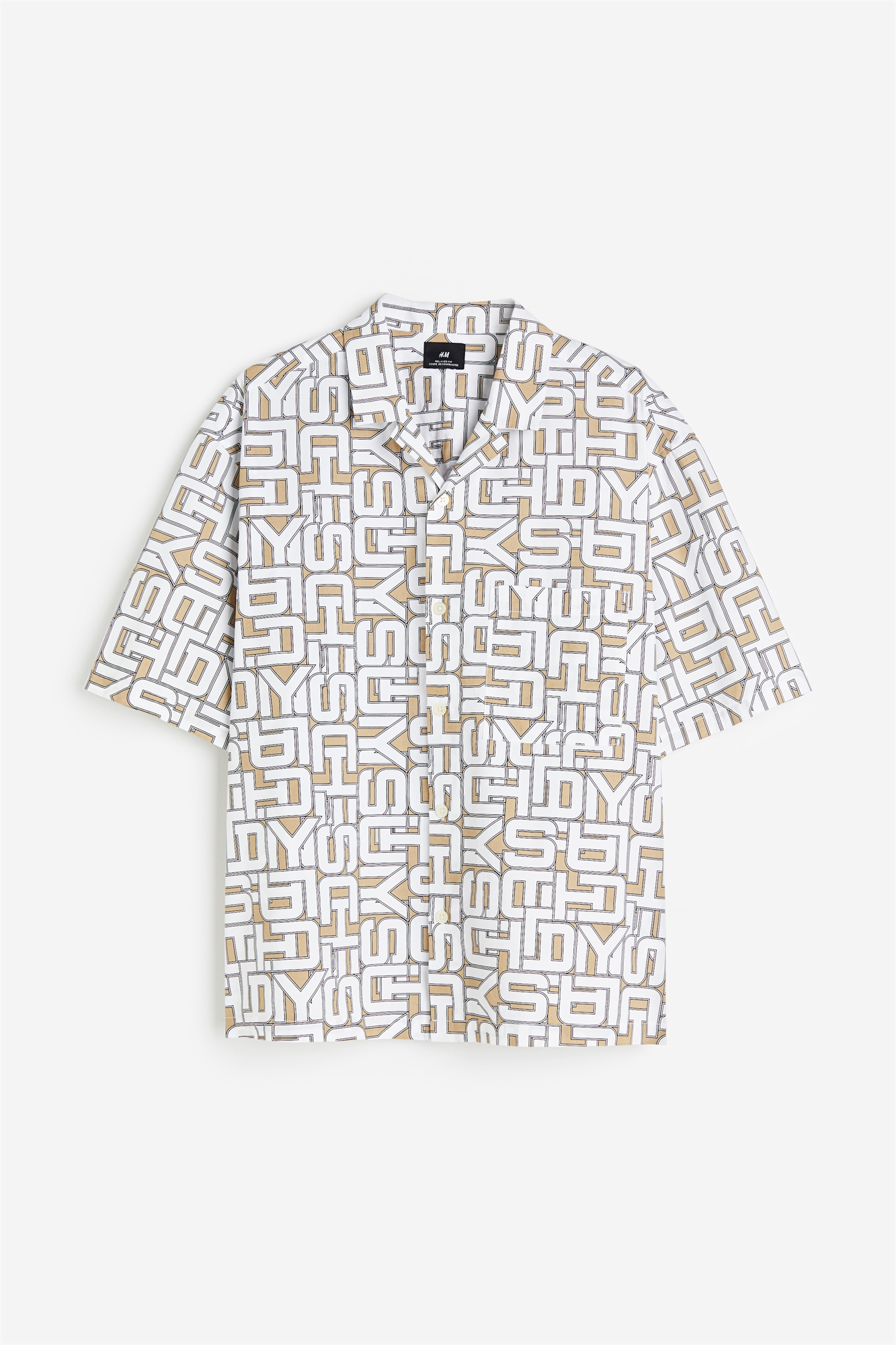 Рубашка с короткими рукавами из узорчатого хлопкового поплина с курортным воротником, французским передом и ярмом сзади. Спущенные плечи, открытый нагрудный карман и прямой подол с разрезом с каждой стороны. Покрой оверсайз, обеспечивающий мешковатый и свободный силуэт.