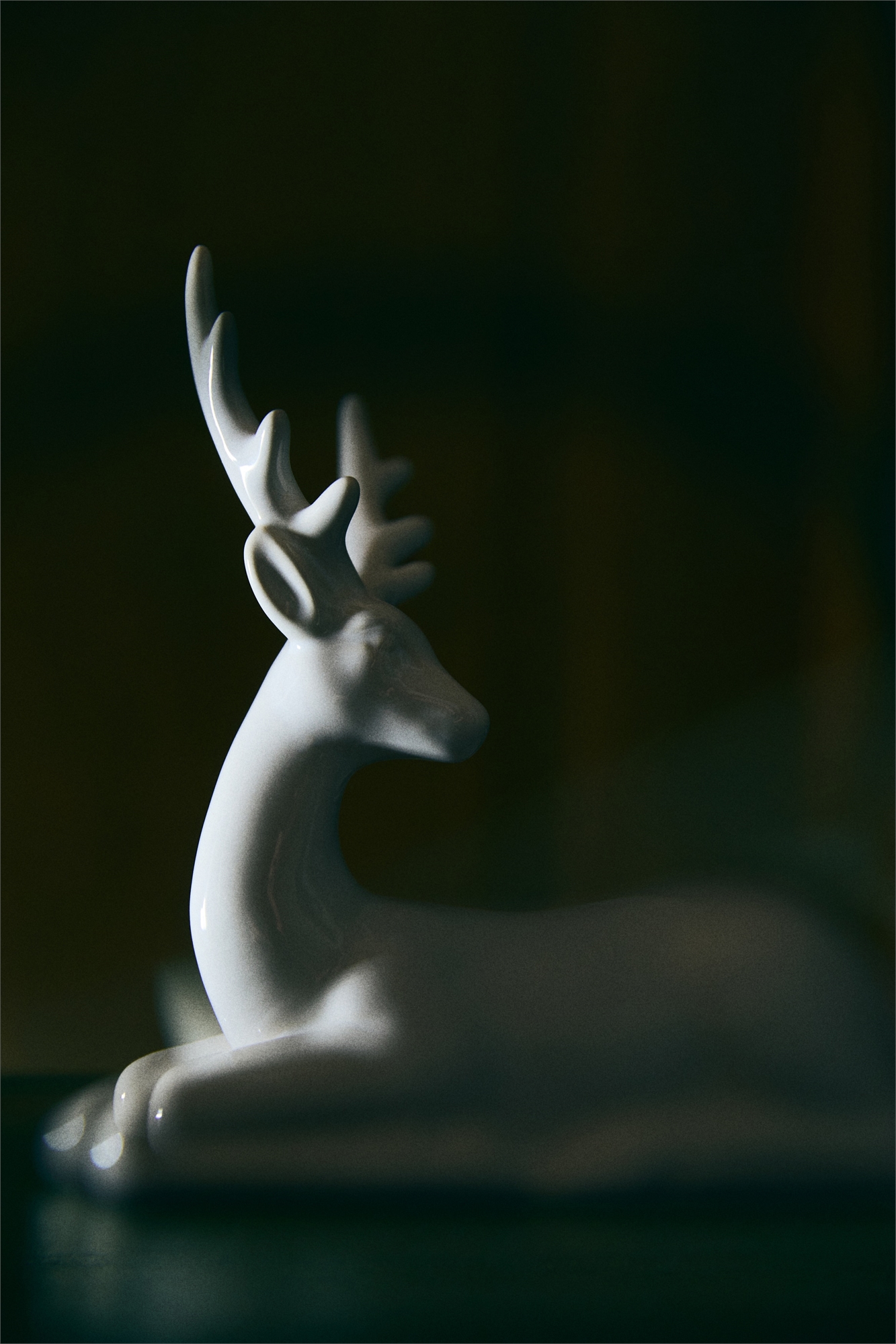 Рождественское украшение из керамогранита в виде оленя. Длина 10 см. Высота 15 см.