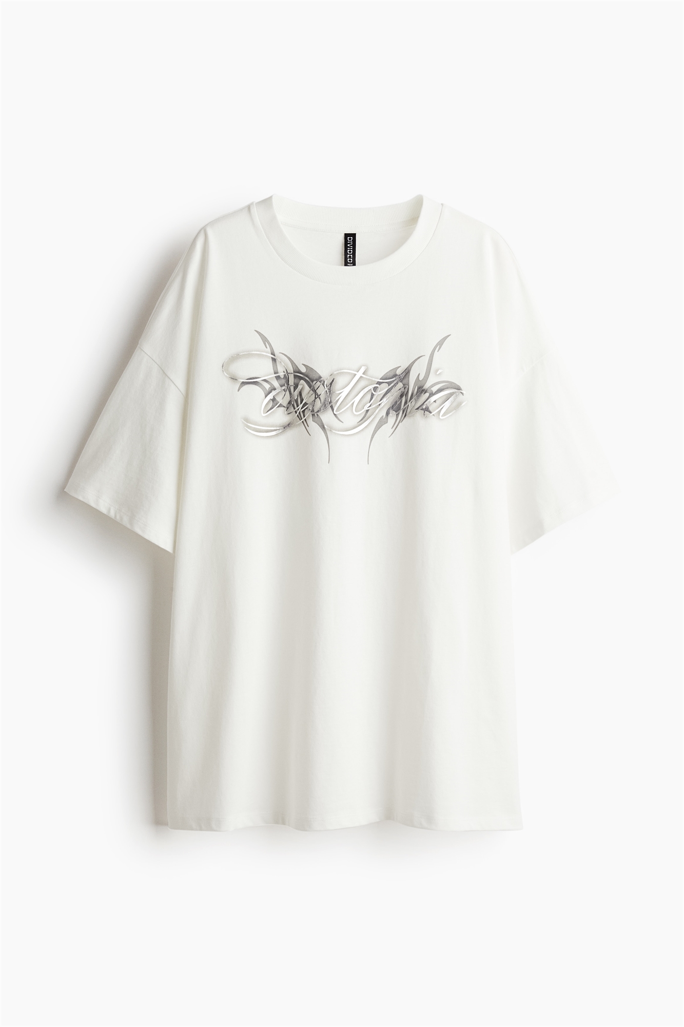 Футболка оверсайз из мягкого хлопкового джерси с логотипом спереди. Отделка в рубчик по вырезу горловины и спущенные плечи.