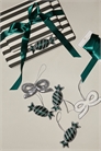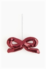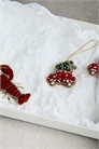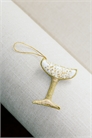 Елочное украшение, украшенное блестками и жемчугом. Блестящий шнур для подвешивания.