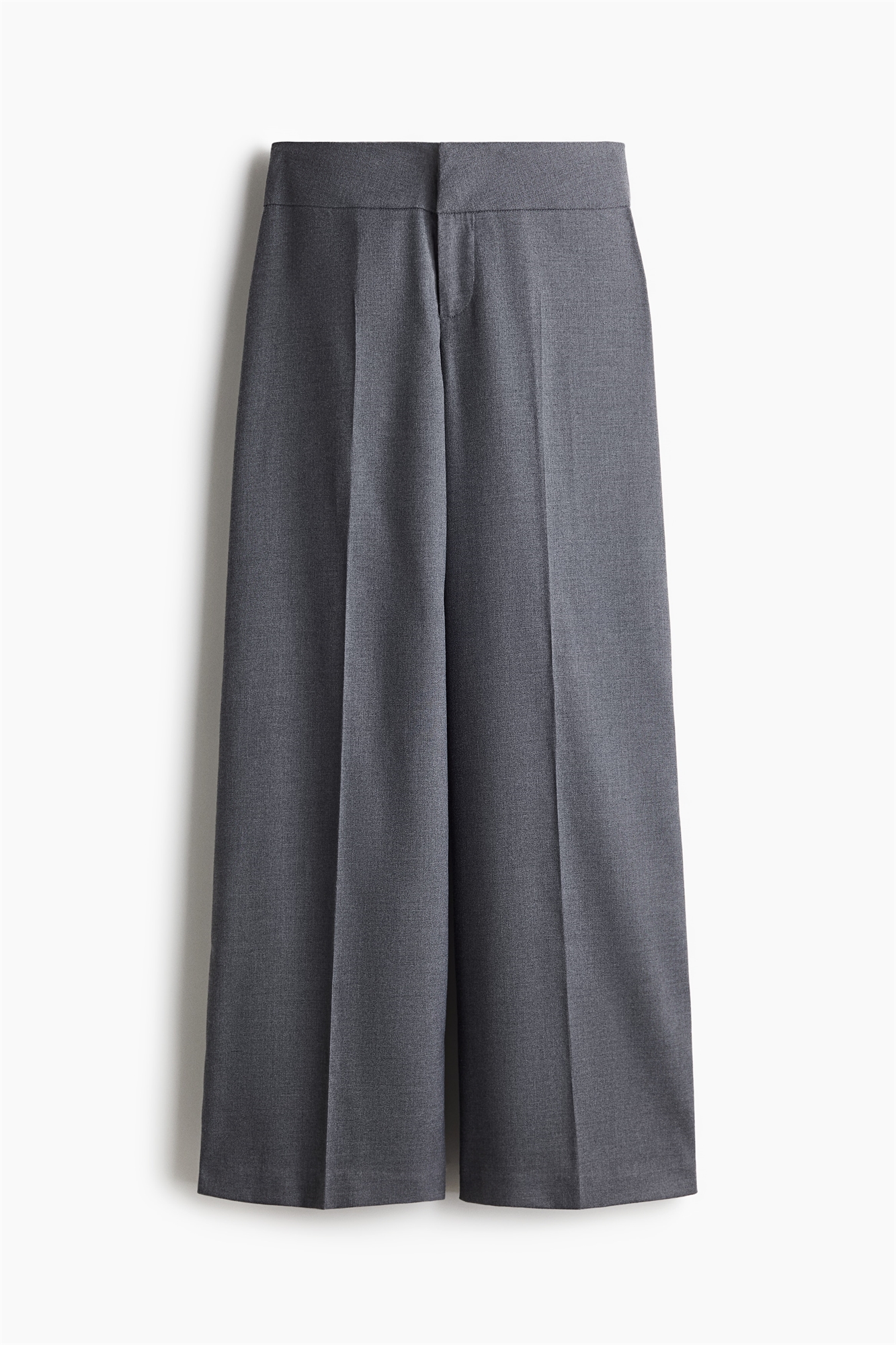 Брюки из тканого материала с ширинкой на молнии и потайной застежкой на крючок и планку. Широкие прямые ноги со складками спереди и сзади.