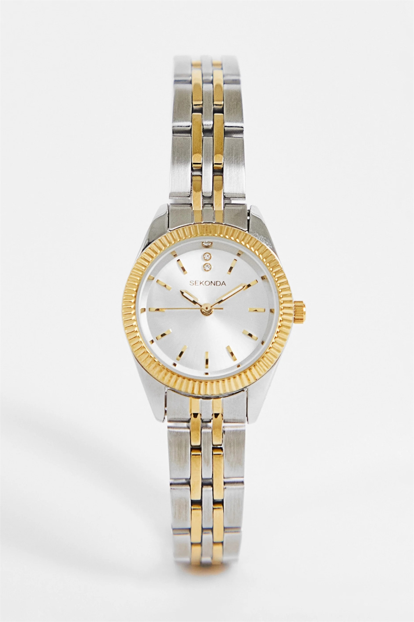 Женские аналоговые часы Francis с круглым корпусом из серебряного сплава, двухцветным браслетом из нержавеющей стали и серебристым циферблатом