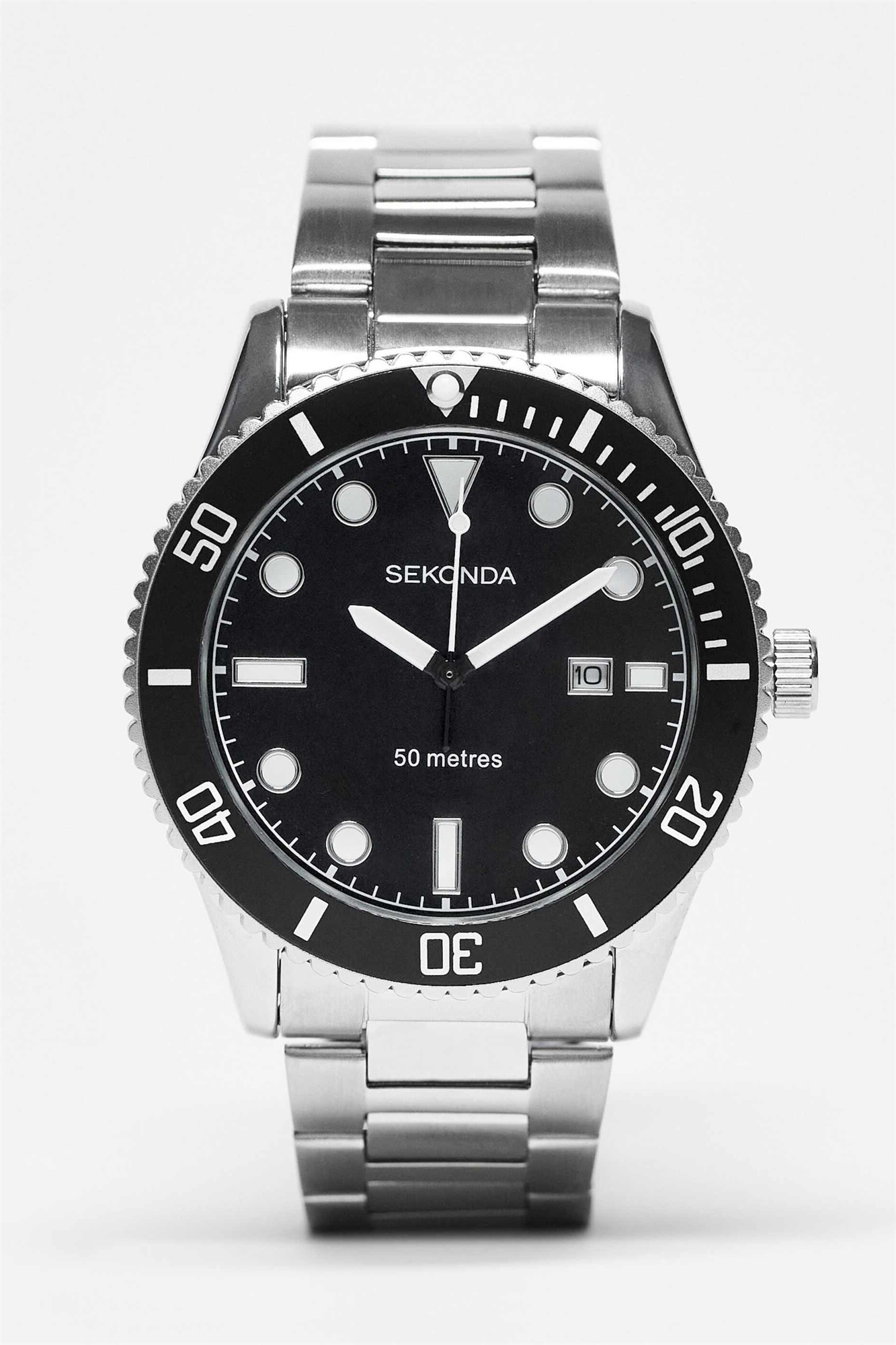 Мужские аналоговые часы Ocean диаметром 43 мм с круглым корпусом из серебряного сплава, браслетом из нержавеющей стали серебристого цвета и черным циферблатом